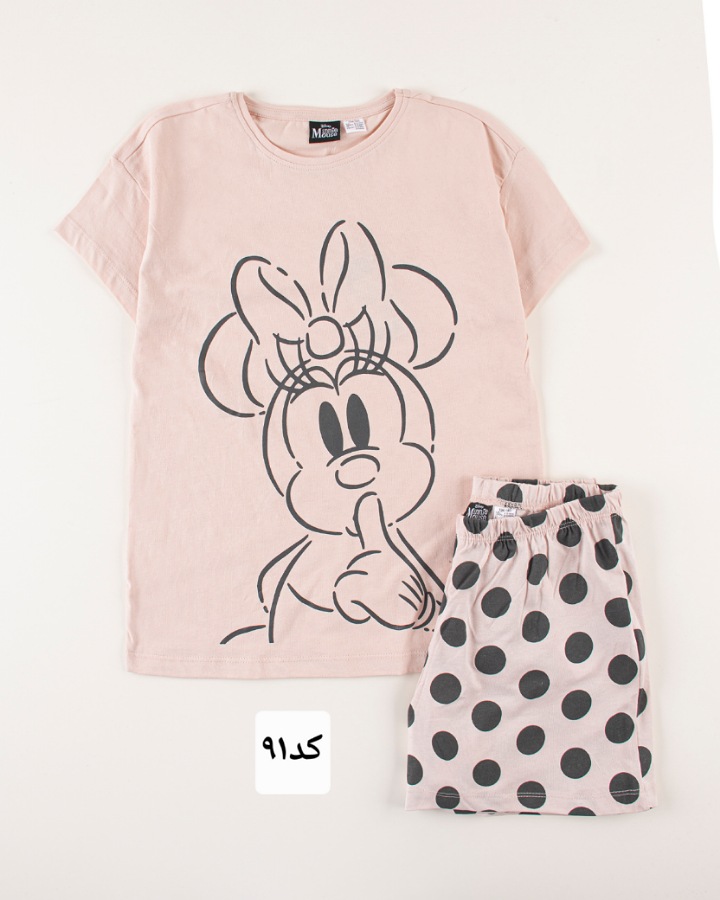 تیشرت و شلوارک نخی دخترانه میکی موس ست راحتی بچگانه