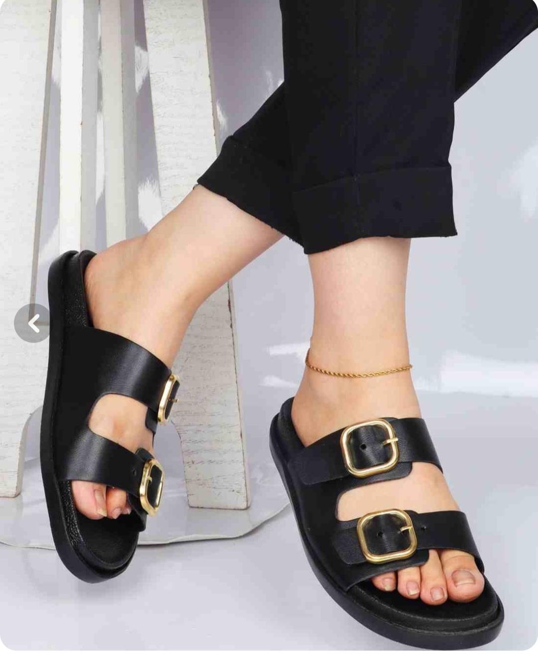 صندل دوسگک طبی زنانه و دخترانه صندل طبی دوبند مشکی راحتی دمپایی روفرشی