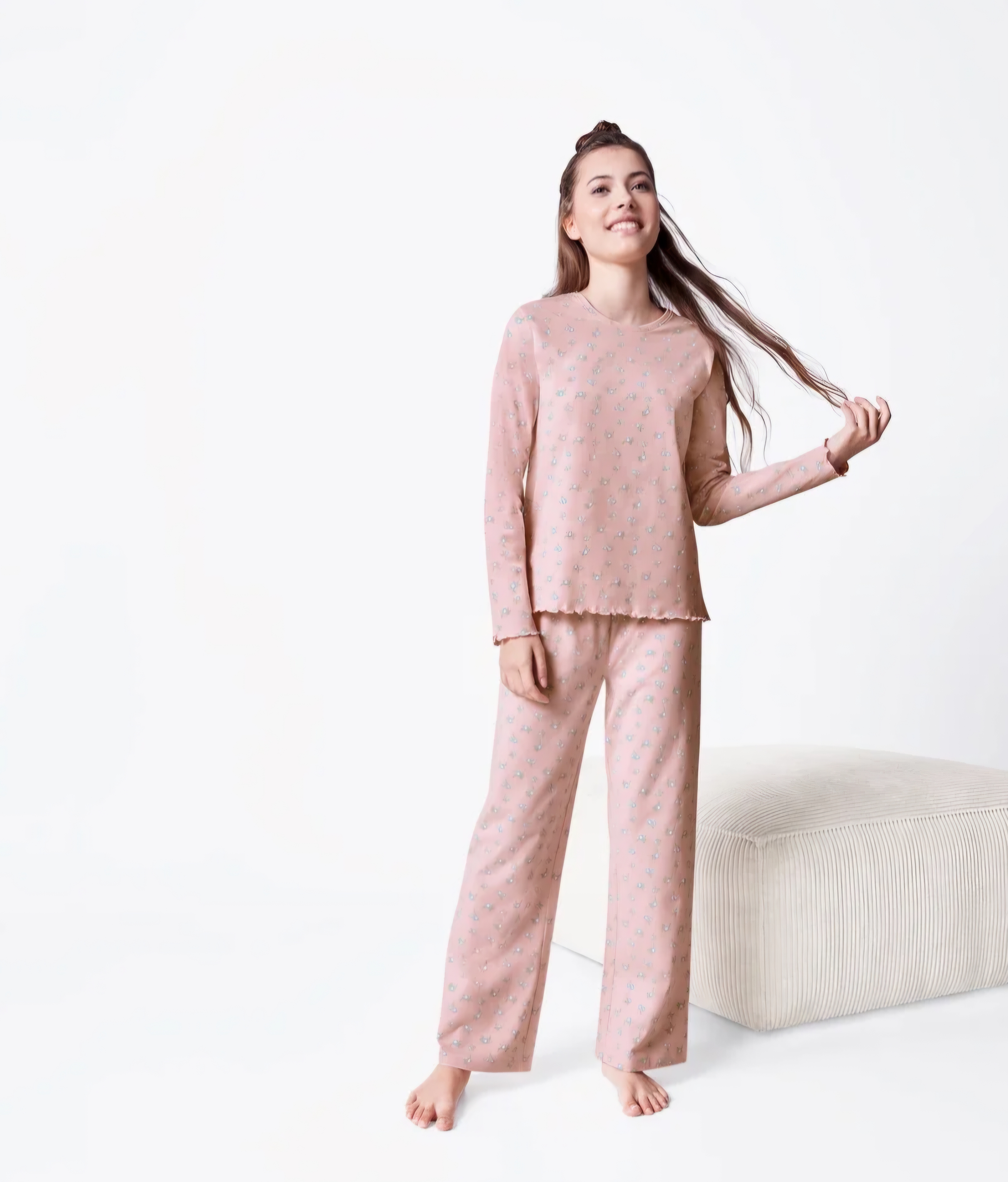 بلوز و شلوار تدی راحتی دخترانه جنس بینظیر و فوق العاده راحت تیشرت آستسن بلند و شلوار خانگی مخملی خارجی