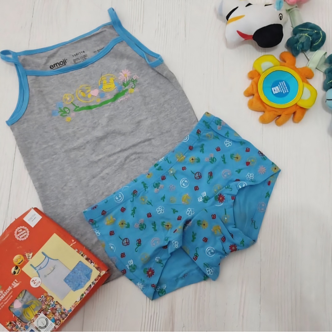 ست زیرپوش و شورت بچگانه دخترانه نخ پنبه ایموجی