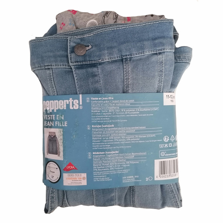 کت کلاه دار پیپرتس مدل جین آمیخته ای از 80 درصد نخ و پنبه و 18 درصد پلی استر و 2 درصد الاستین می باشد. لازم به توضیح است که کمر این کت بالای باسن قرار دارد و آستین های آن بلند است که متناسب با مد روز تولید شده است و کیفیت بسیار بالایی دارد و چون تست کیفیت دارد هیچگونه حساسیتی ایجاد نمی کند. سایزبندی این کت بر اساس سن و سال می باشد ولی شما نسبت به قد ( سانتی متر ) فرزندانتان انتخاب کنید نه سن و سال . لطفا از رنگهای مشابه برای شستشو استفاده کنید و حتما جدول انتخاب سایزهای آلمانی به ایرانی را در قسمت عکس ها مطالعه بفرمایید