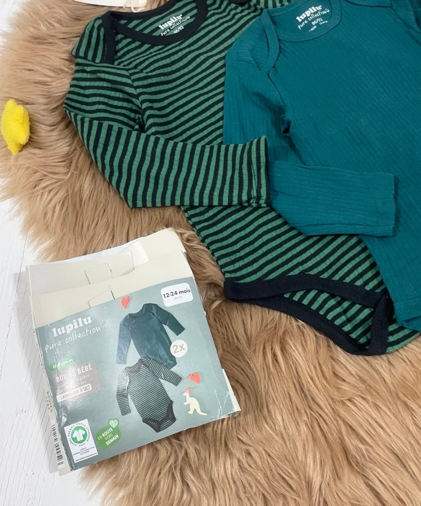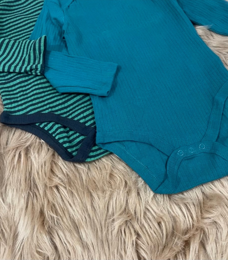 پک دوتایی بادی آستین بلند نوزادی پسرانه دخترانه لوپیلو طرح کبریتی سبز