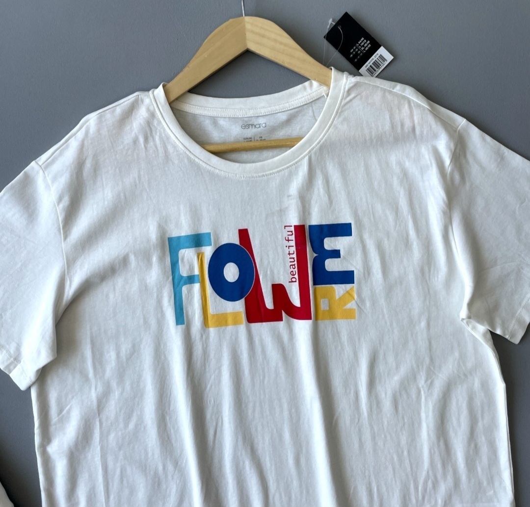 تیشرت آستین کوتاه زنانه سفید اسمارا طرح flower