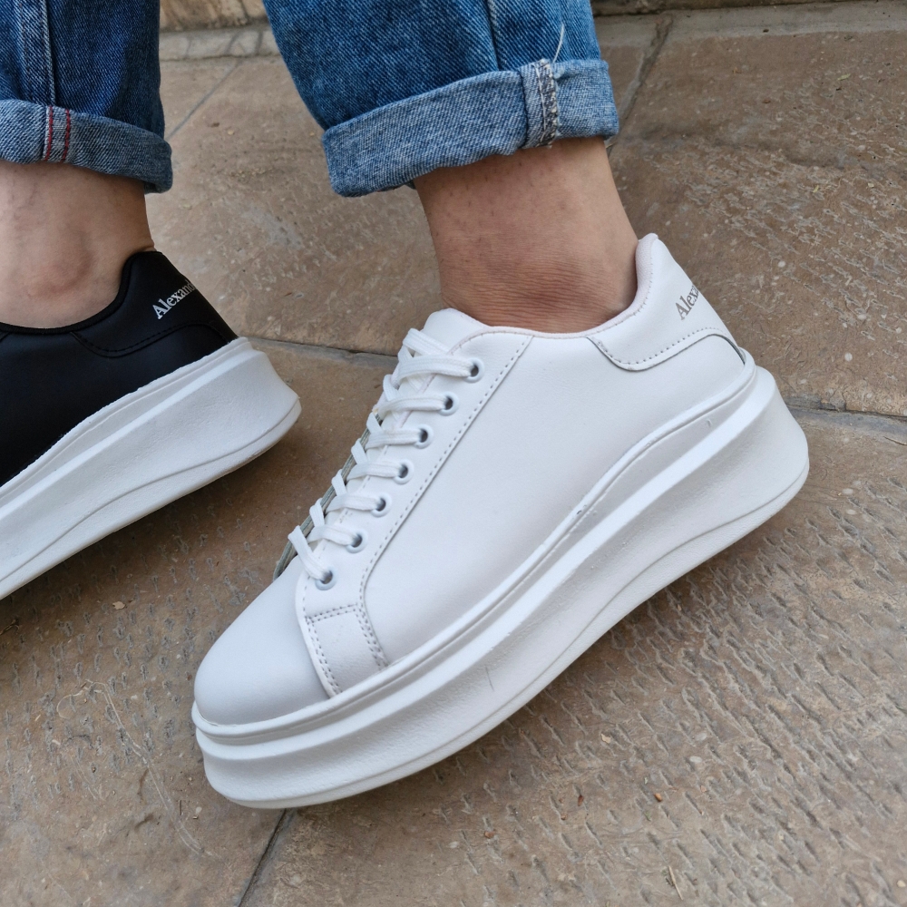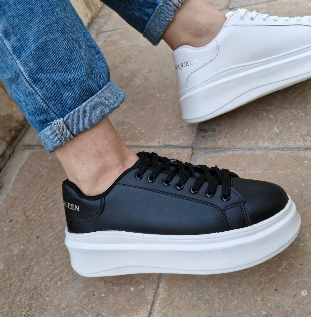 کتونی لژدار ونس بندی لژدار زنانه و دخترانه سفید و مشکی ونس لژدار