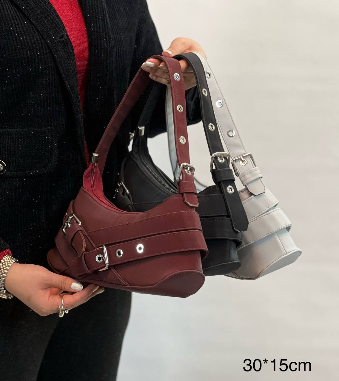 کیف مجلسی شیک زنانه دخترانه تک بند خفن و جنس خارجی زرشکی طوسی مشکی