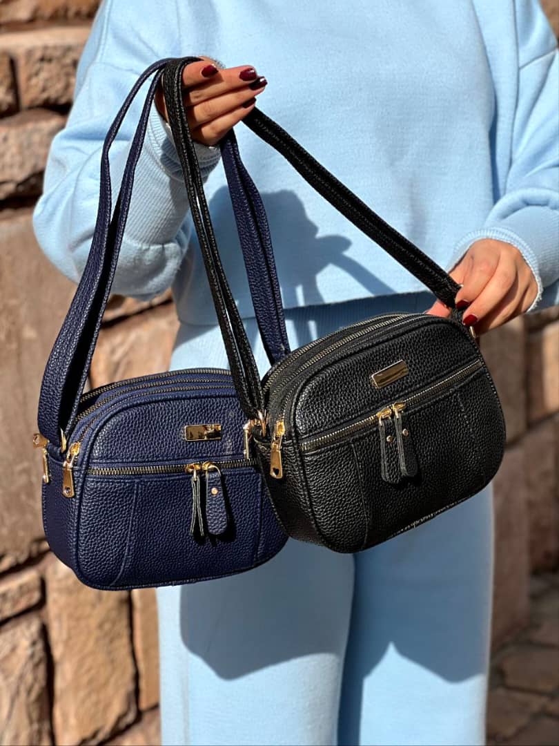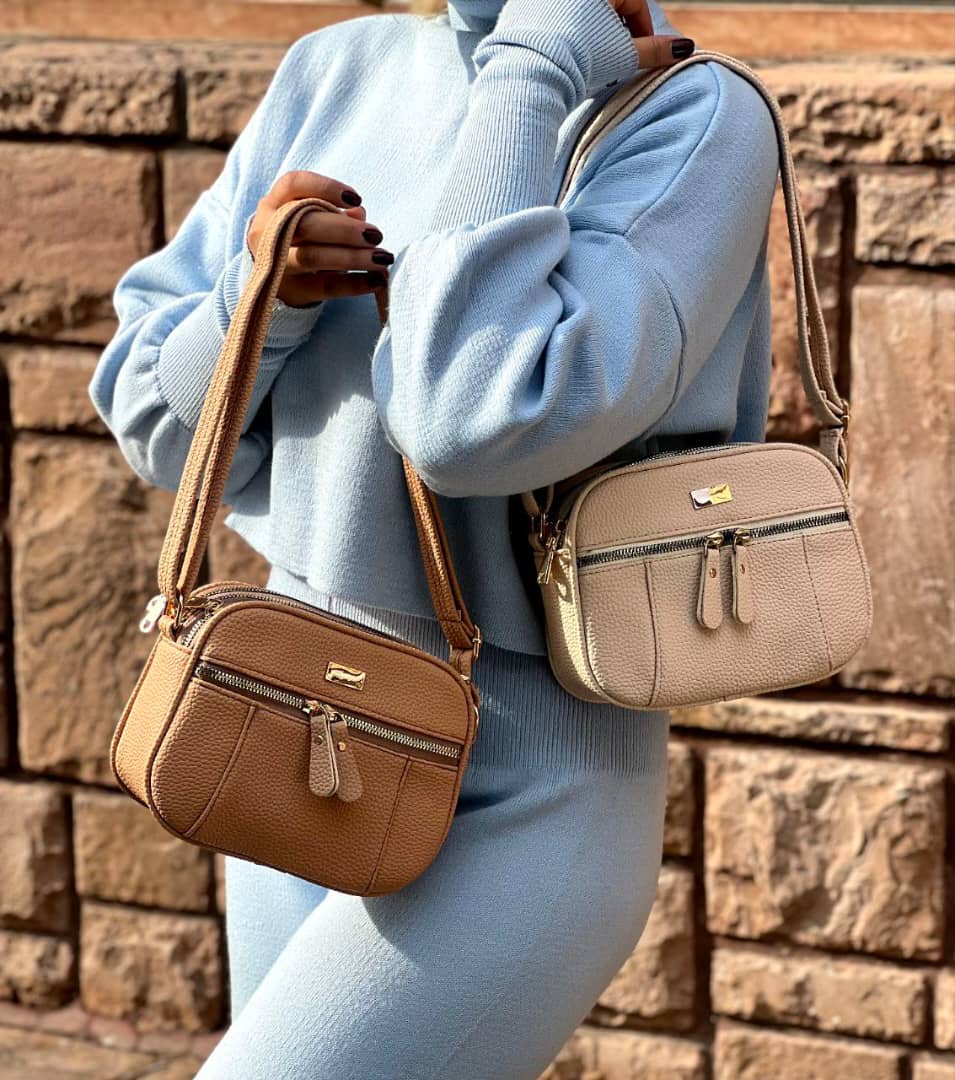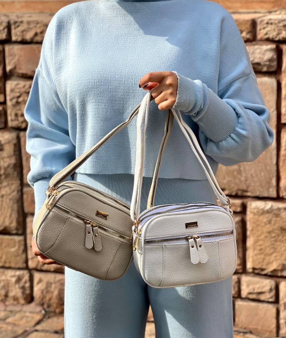 کیف دوشی چند زیپ سه زیپ جادار اسپرت با بند بلند دوشی دخترانه زنانه کرم مشکی