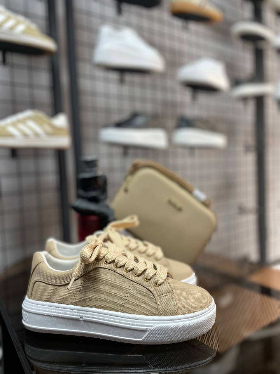ونس بندی کتونی جودون خارجی کرم مشکی سفید زنانه و دخترانه کنفی