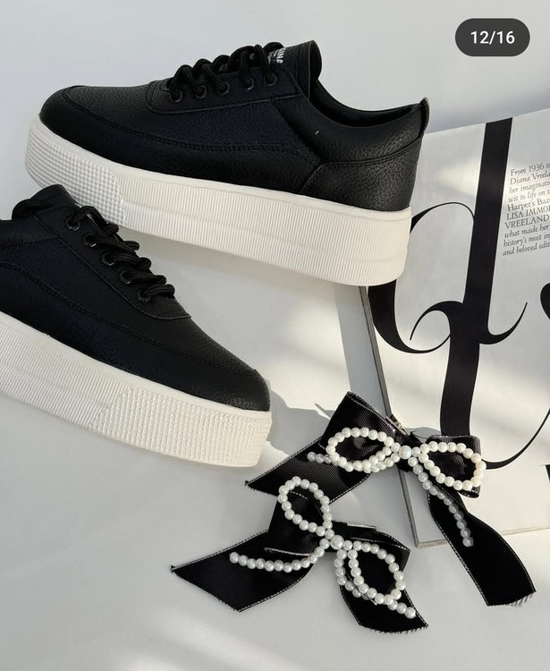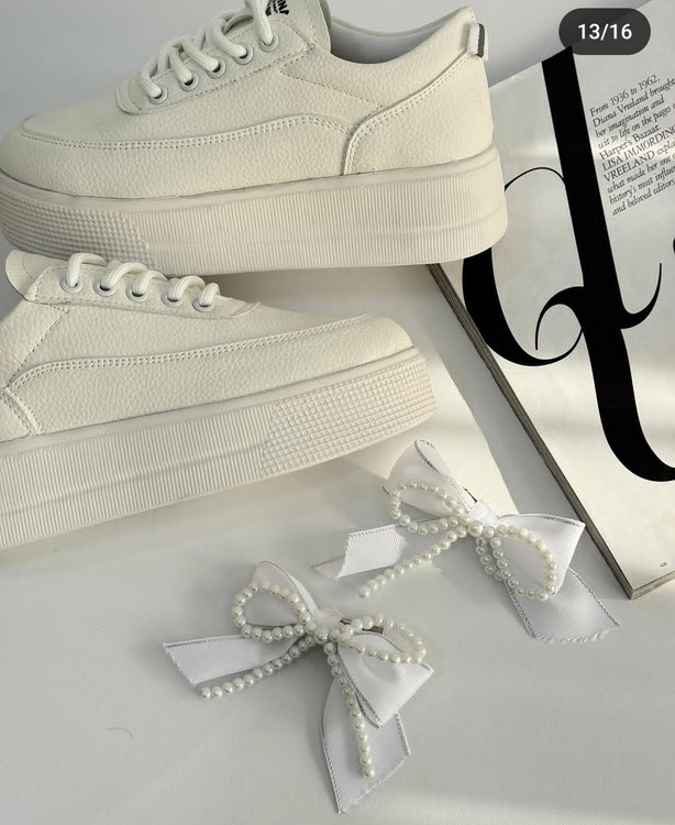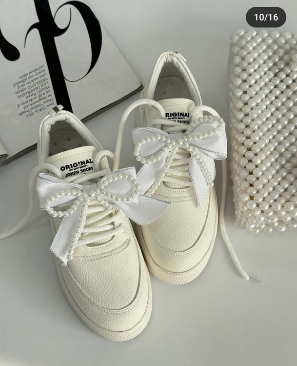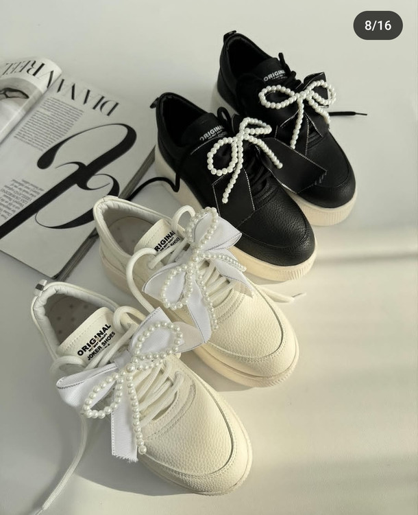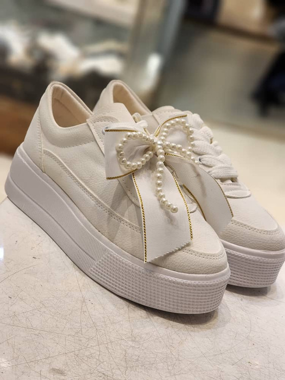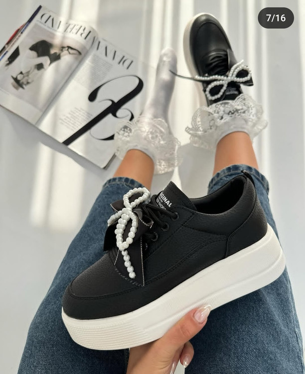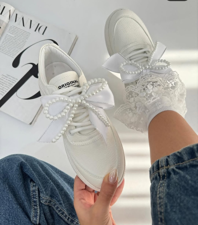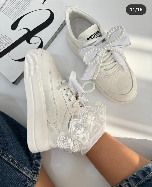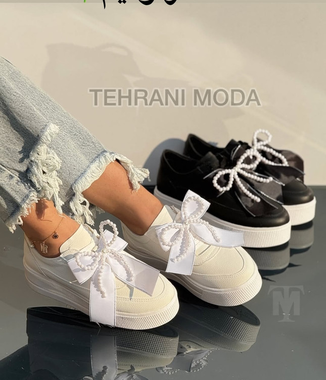 کتونی لژدار مرواریدی سفید و مشکی دخترانه و زنانه لژبلند هم ساده هم مرواریدی کتونی عروس ونس بندی پاپیونی