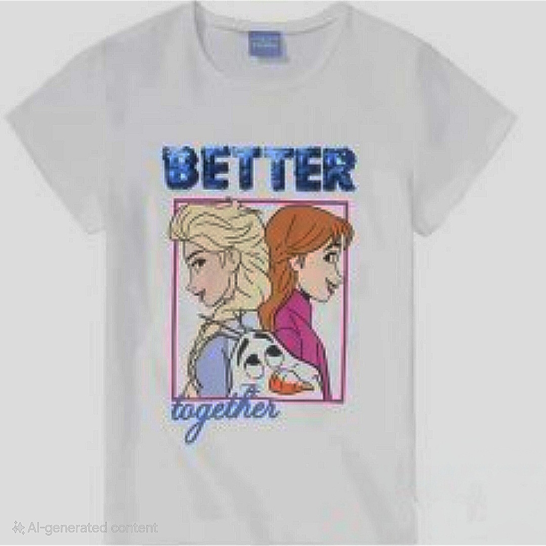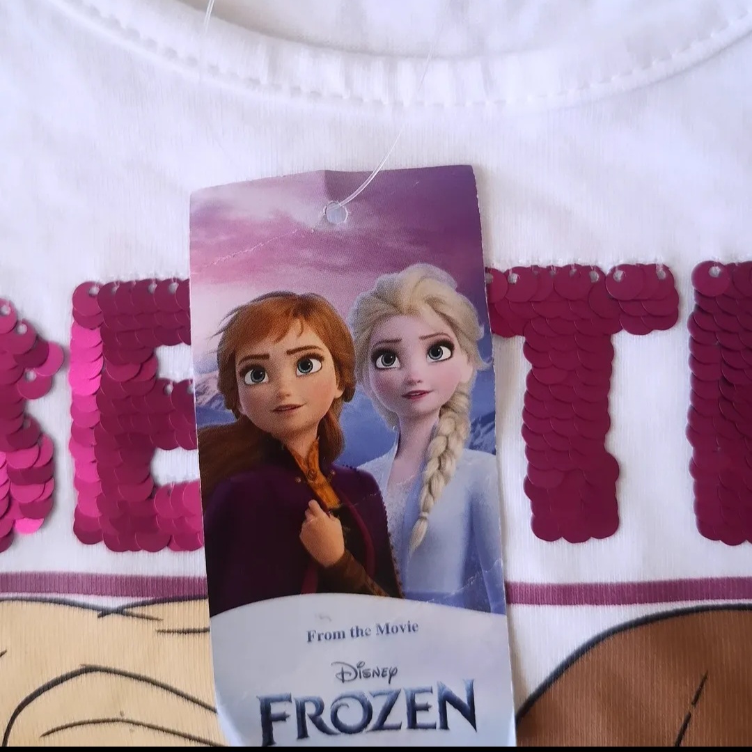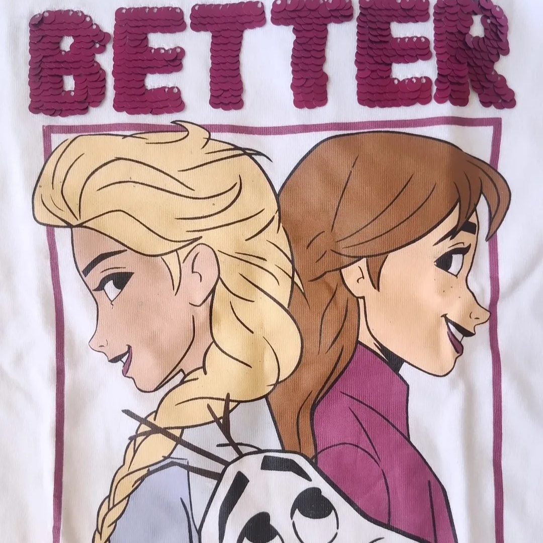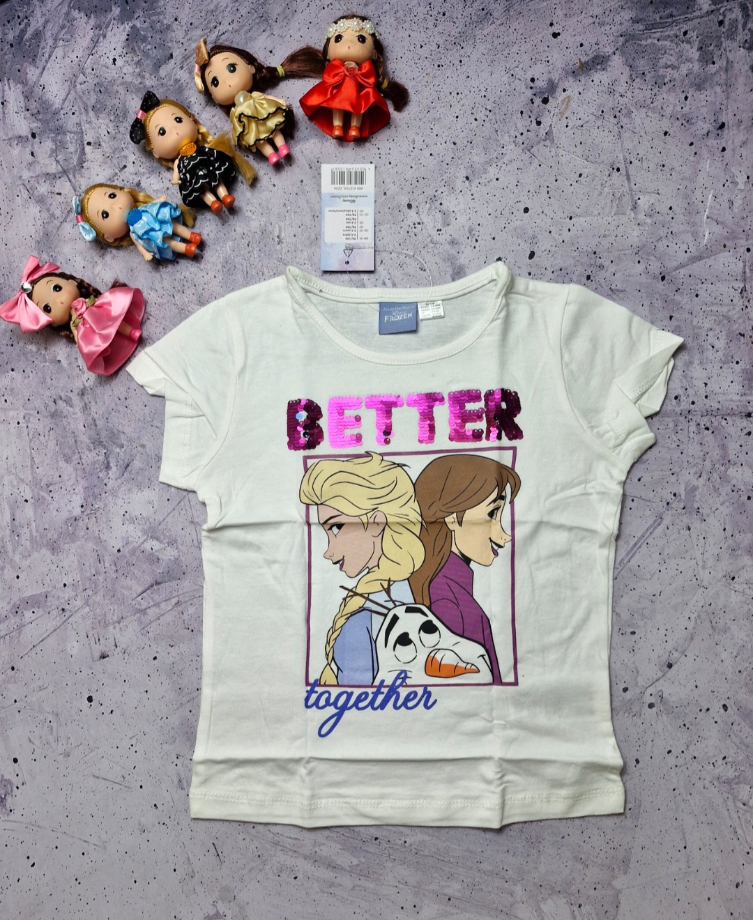 تیشرت فروزن دخترانه السا و آنا بچگانه دیزنی سفید نخی پولک برگردان تی شرت لباس بچه کودک