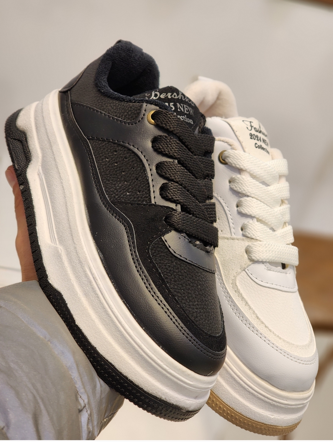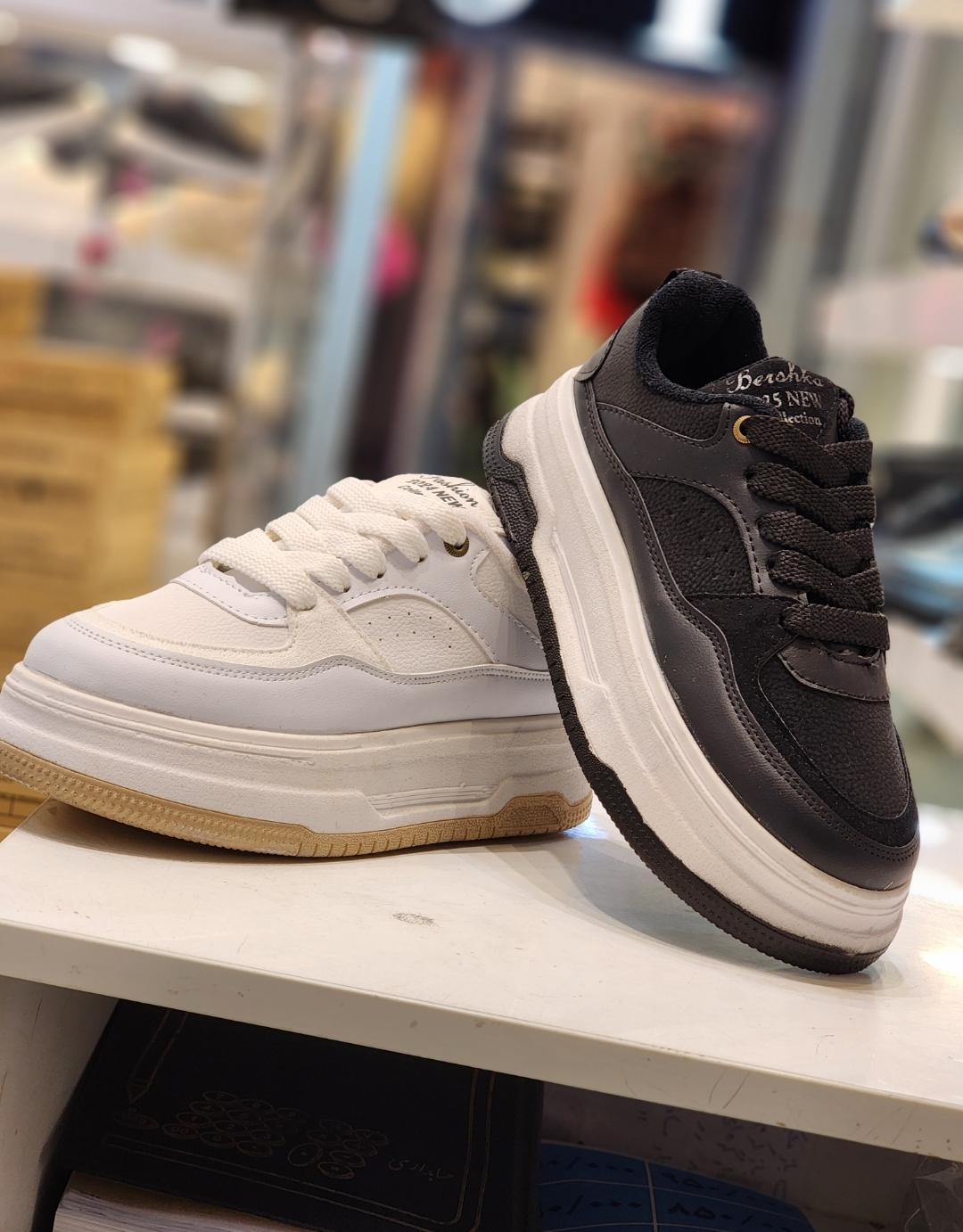 کتونی لژدار ونس بندی لژدار سفید و مشکی دخترانه و زنانه لژبلند