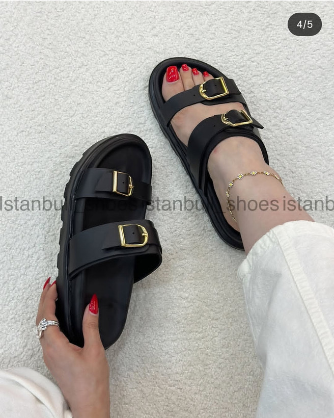 صندل دوسگک طبی زنانه و دخترانه صندل طبی دوبند مشکی راحتی دمپایی روفرشی