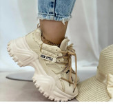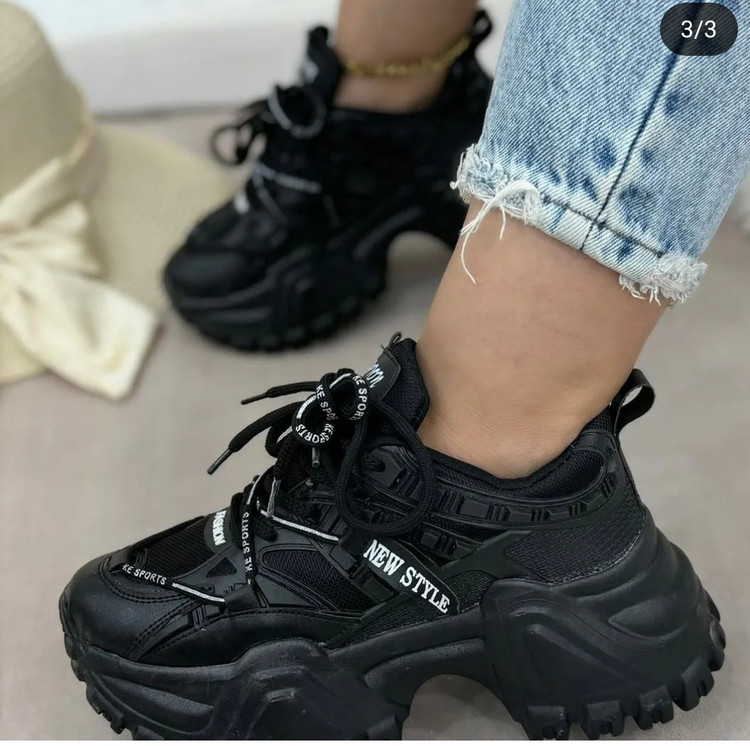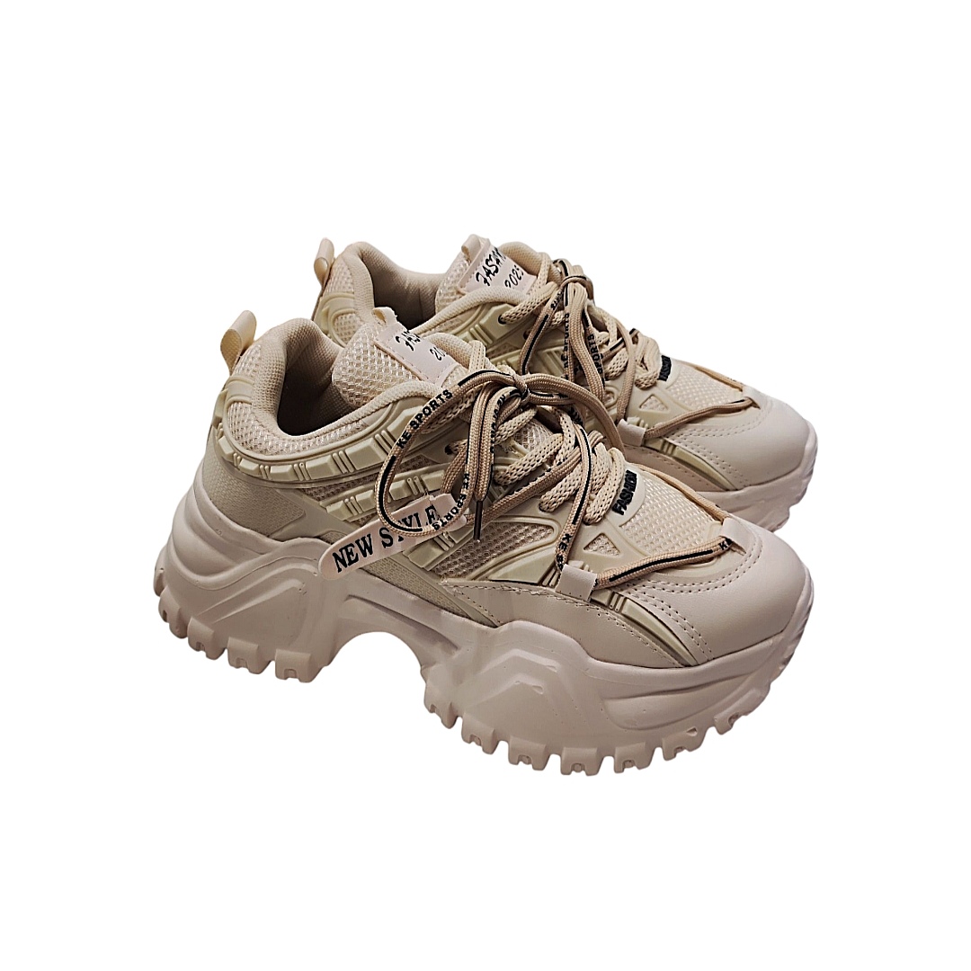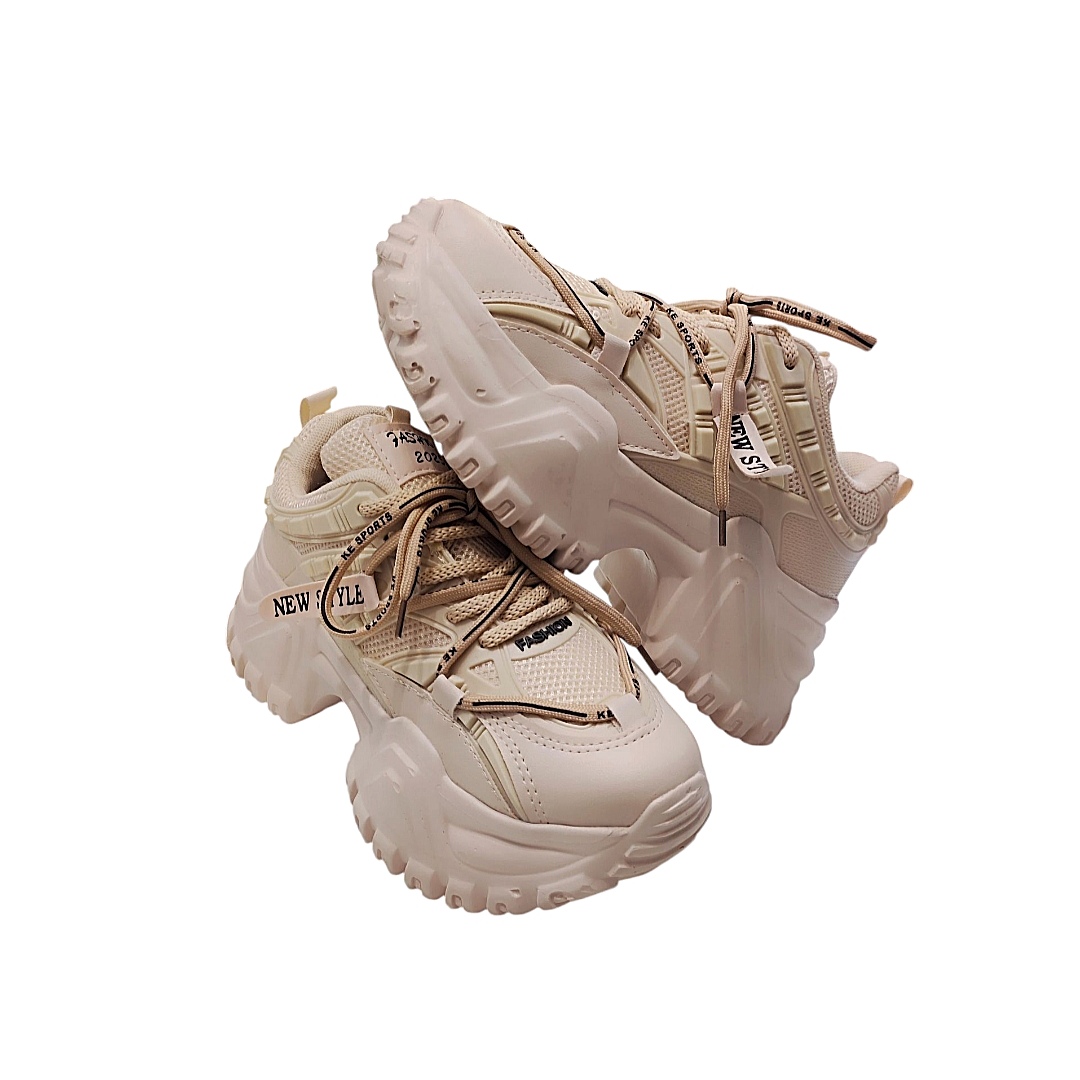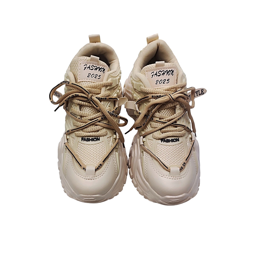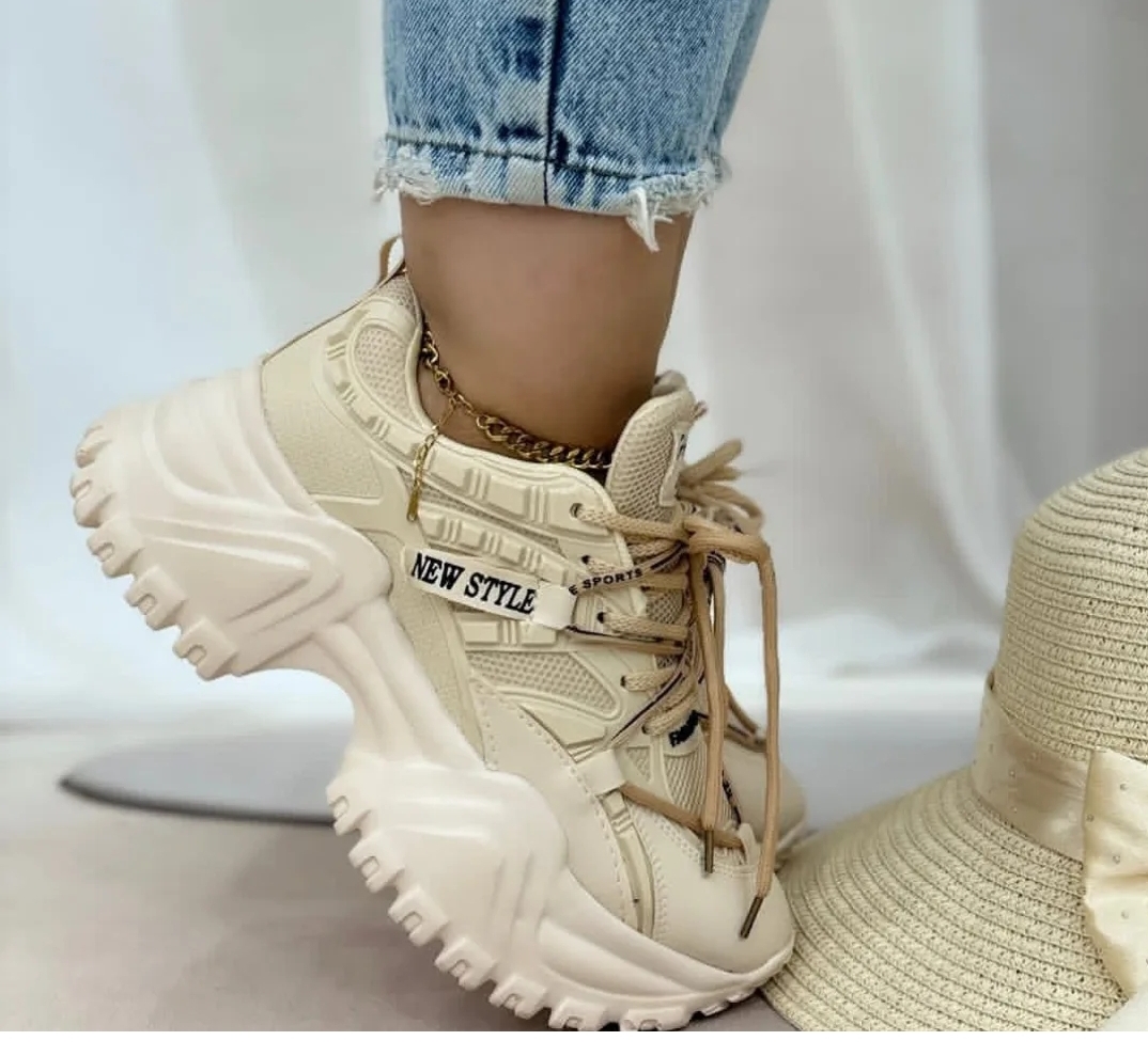 کتونی لژدار فشن اسپرت زنانه و دخترانه لژبلند زنانه و دخترانه مشکی و کرم