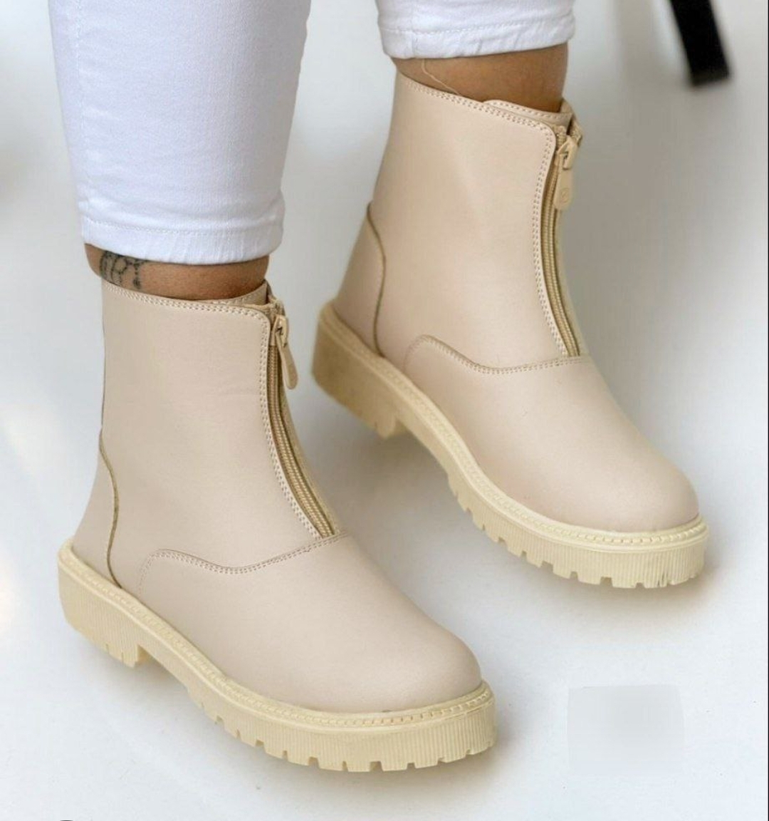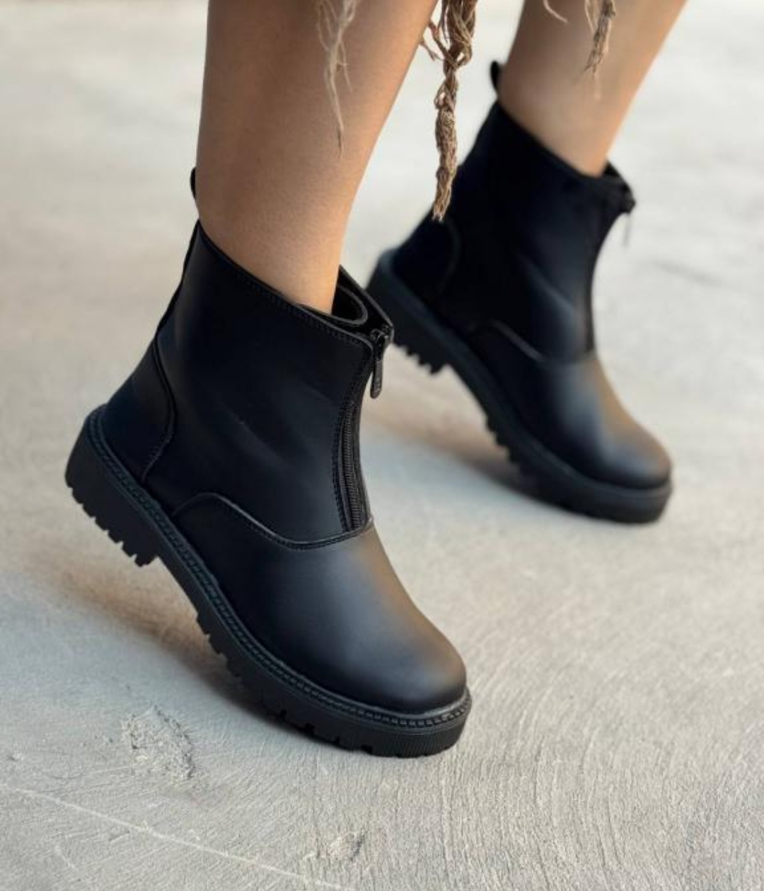 نیم بوت جلو زیپ دخترانه و زنانه بوت زیپی کرم و مشکی