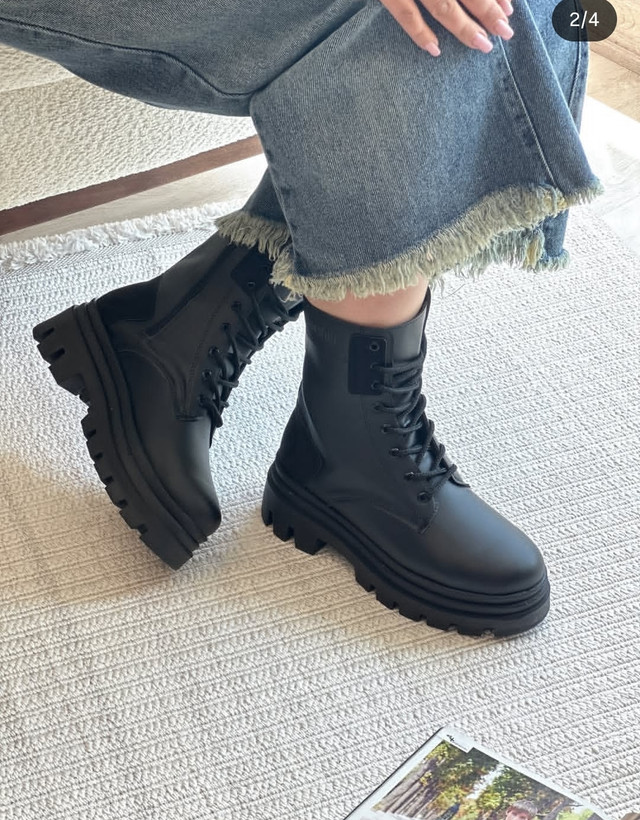 بوت مدل برشکا بغل زیپ دخترانه و زنانه مشکی و کرم نیمبوت برشکا لژدار
