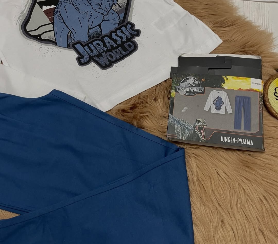 بلوز و شلوار نخ پنبه تیشرت آستین بلند و شلوار بچگانه پسرانه ژوراسیک ورلد دایناسوری