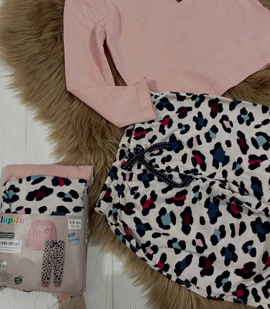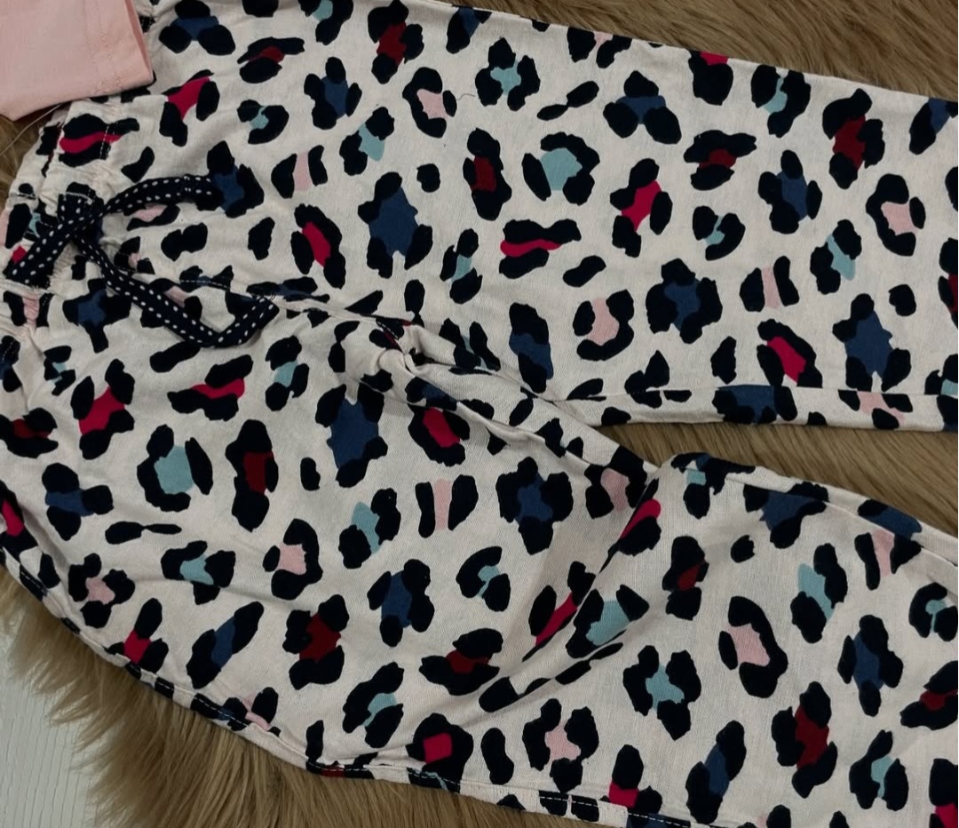 بلوز و شلوار نخ پنبه دخترانه بچگانه پلنگی صورتی لوپیلو تیشرت آستین بلند نخی و شلوار