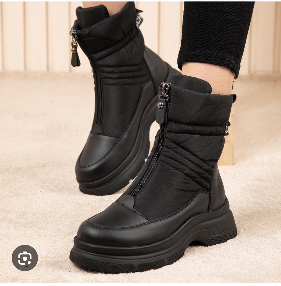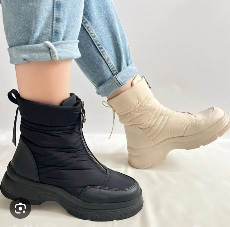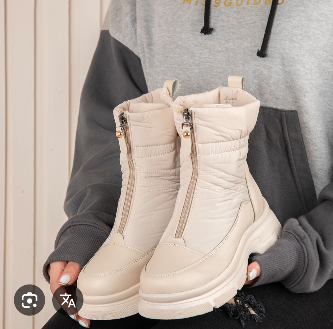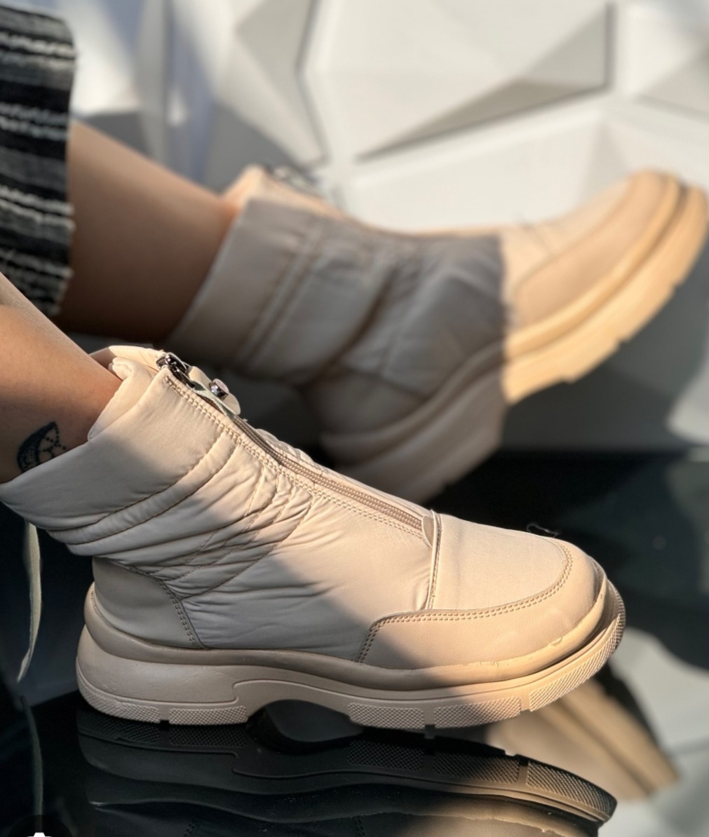 بوتدو نیمبوت کاپشنی جلوزیپ کرم و مشکی زنانه و دخترانه بوت زیپی ضدآب