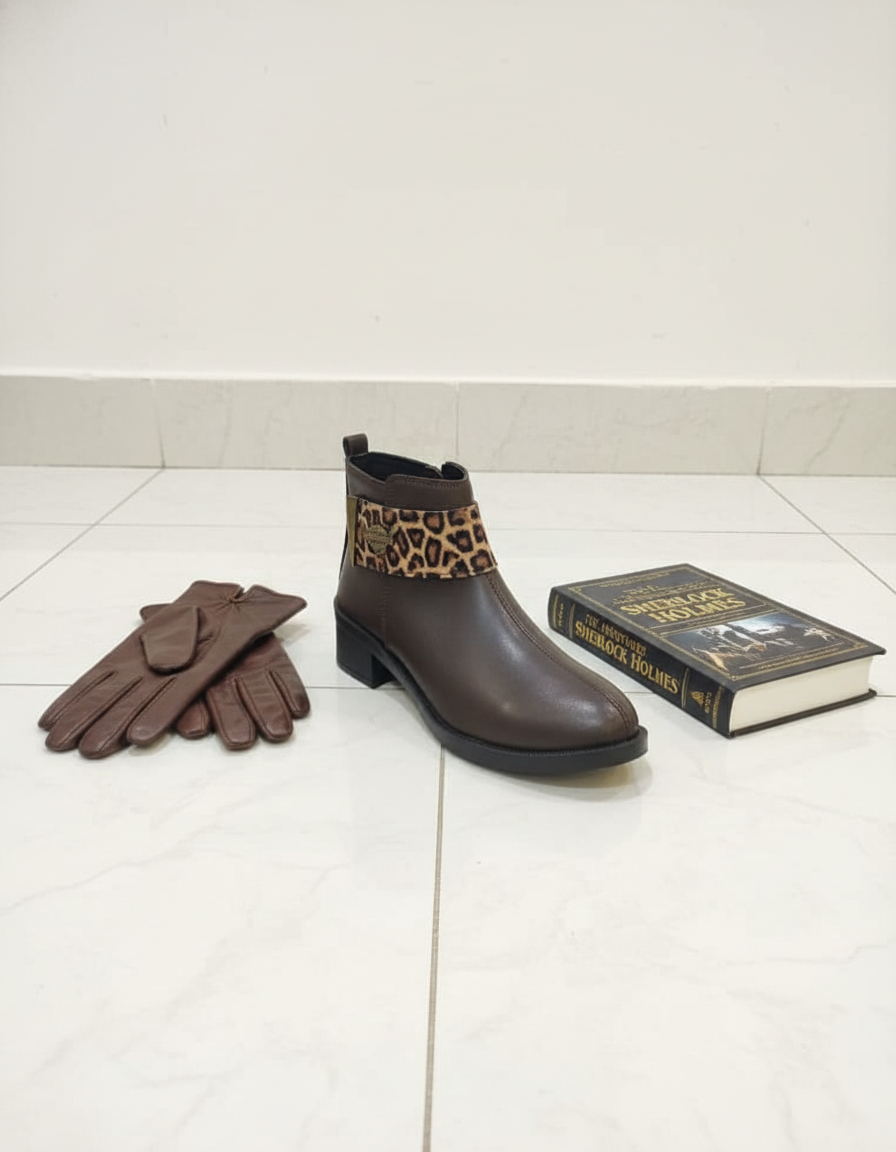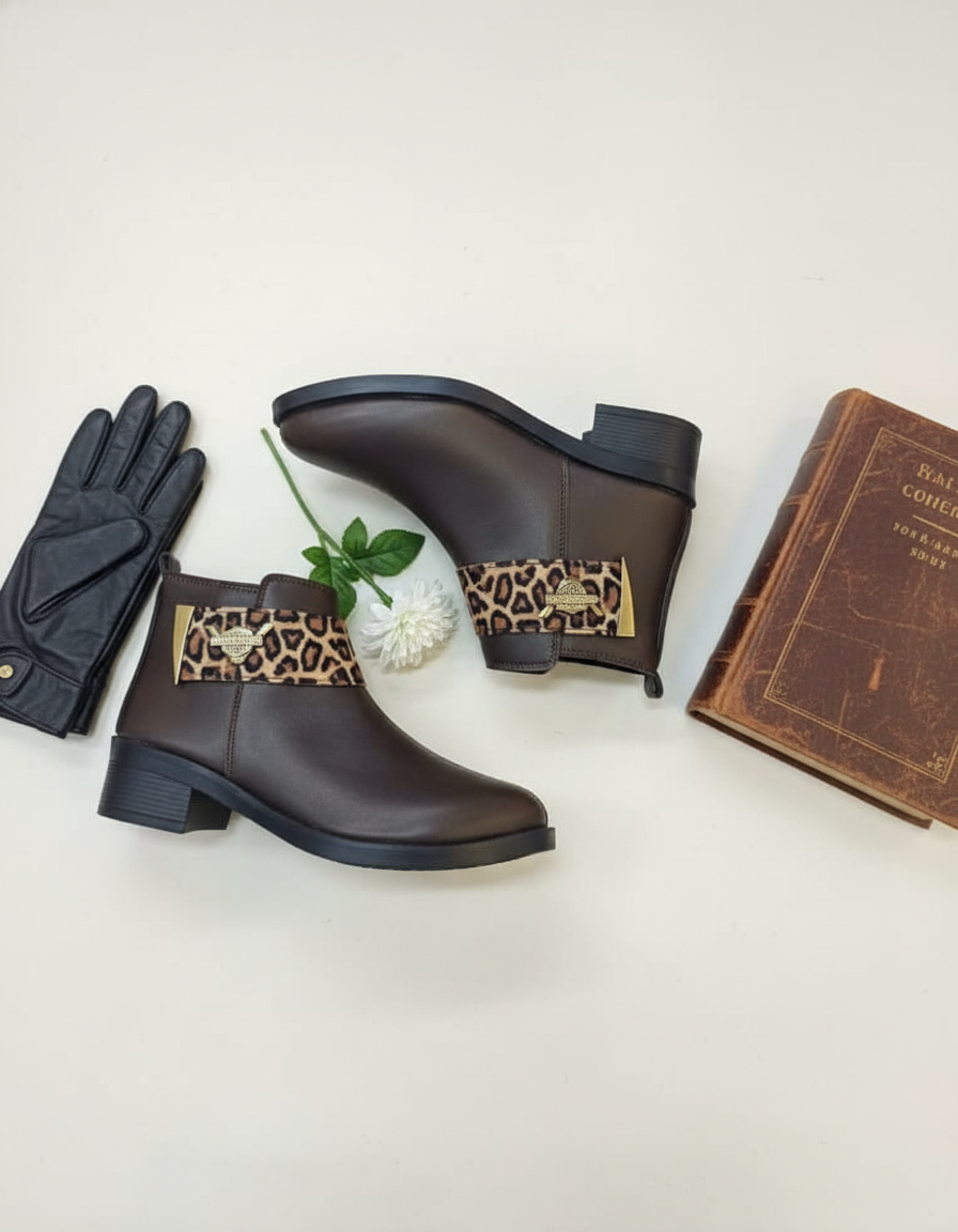 نیم بوت پاشنه دار پلنگی بغل زیپ زنانه و دخترانه قهوه ای سوخته