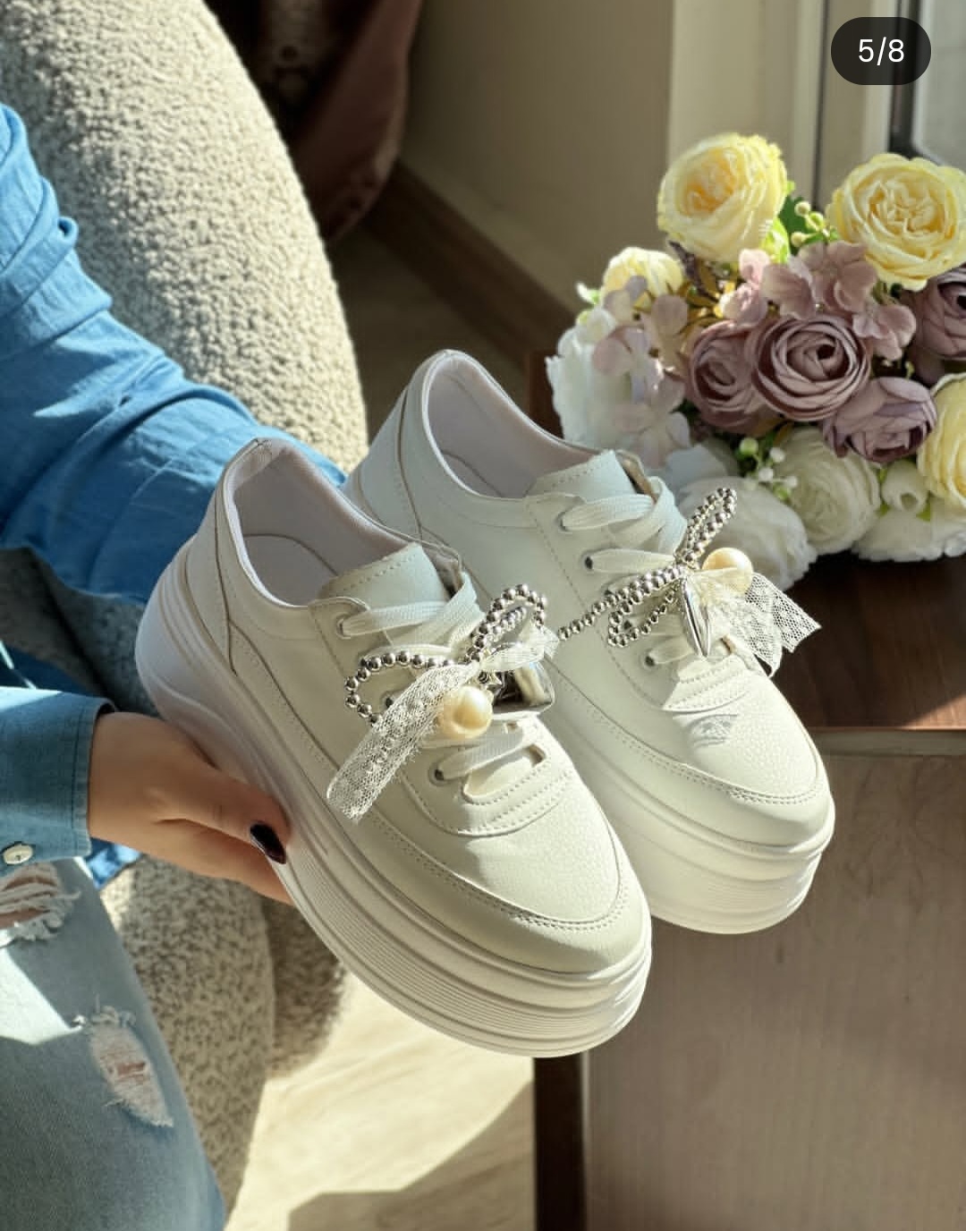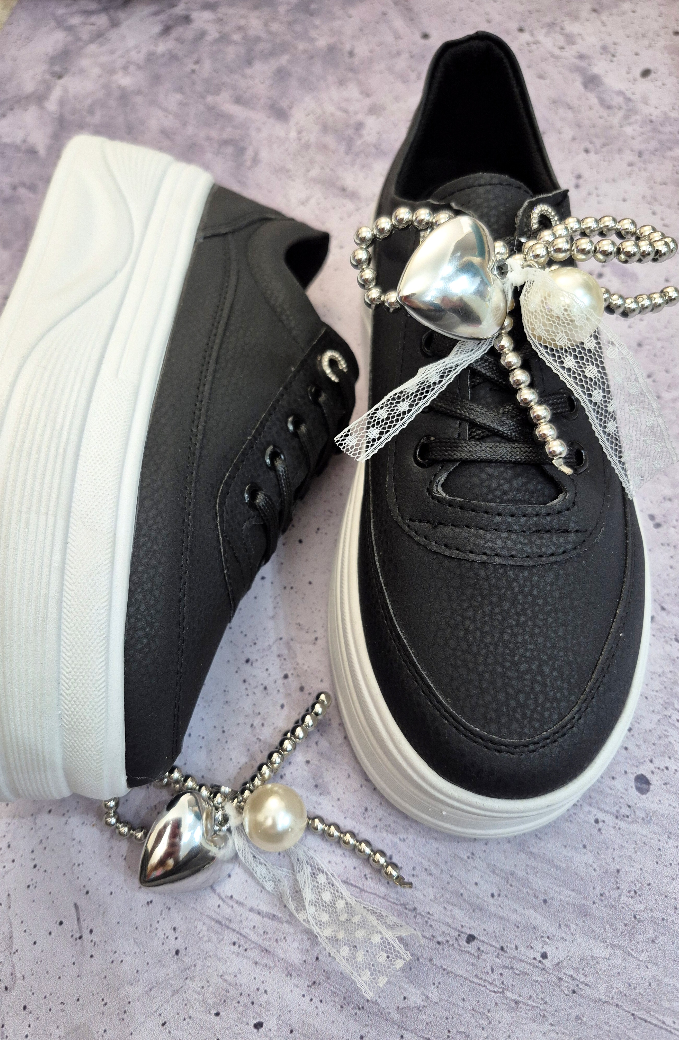 ونس لژدار مدل قلبی زنانه و دخترانه سفید و مشکی کتونی لژبلند لژمخفی سفید و مشکی