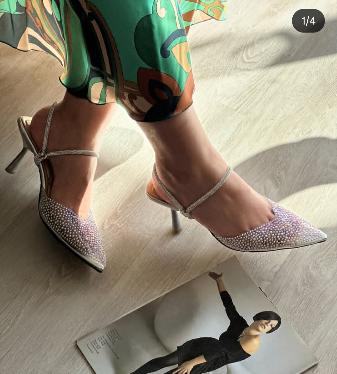 کفش پاشنه دار مجلسی لاکچری مدل طلقی نگینی زنانه و دخترانه