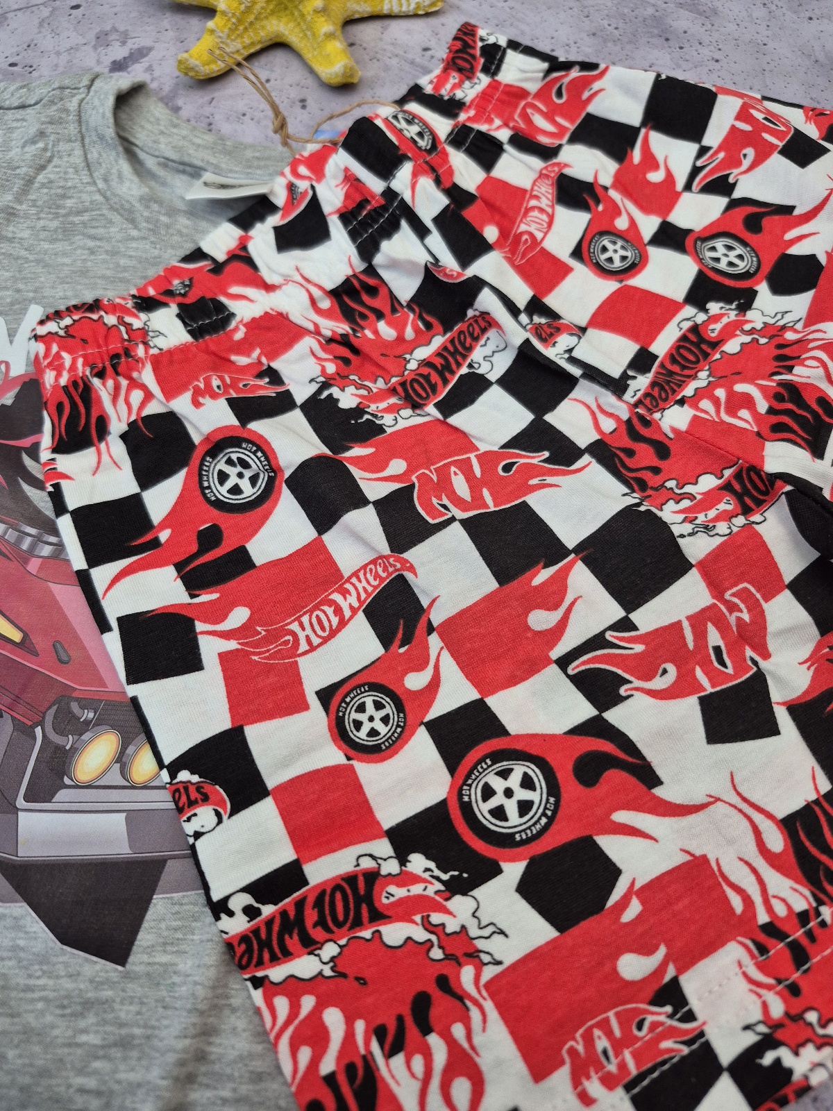 تیشرت و شلوارک نخی ماشین پسرانه ست راحتی بچگانه